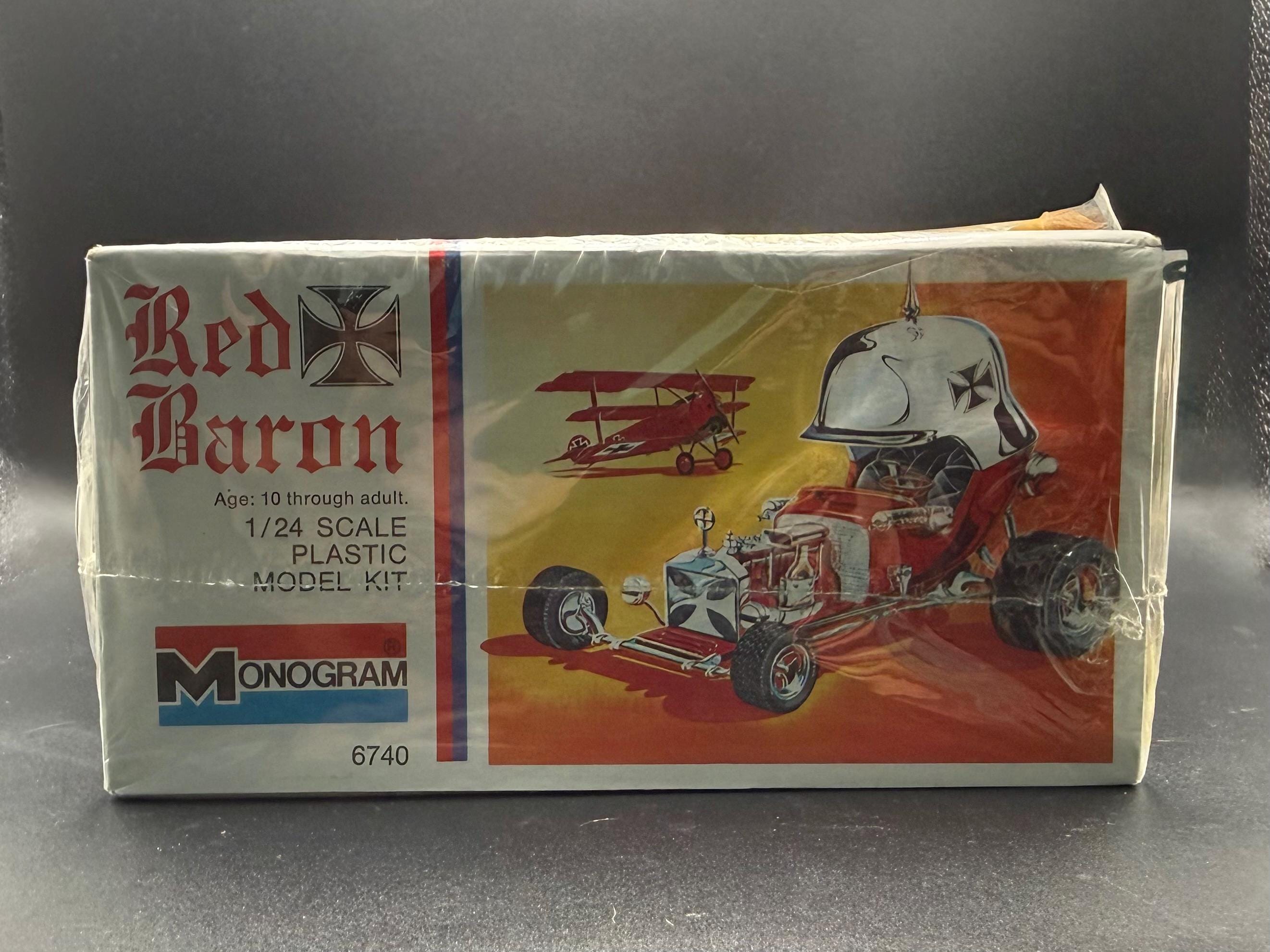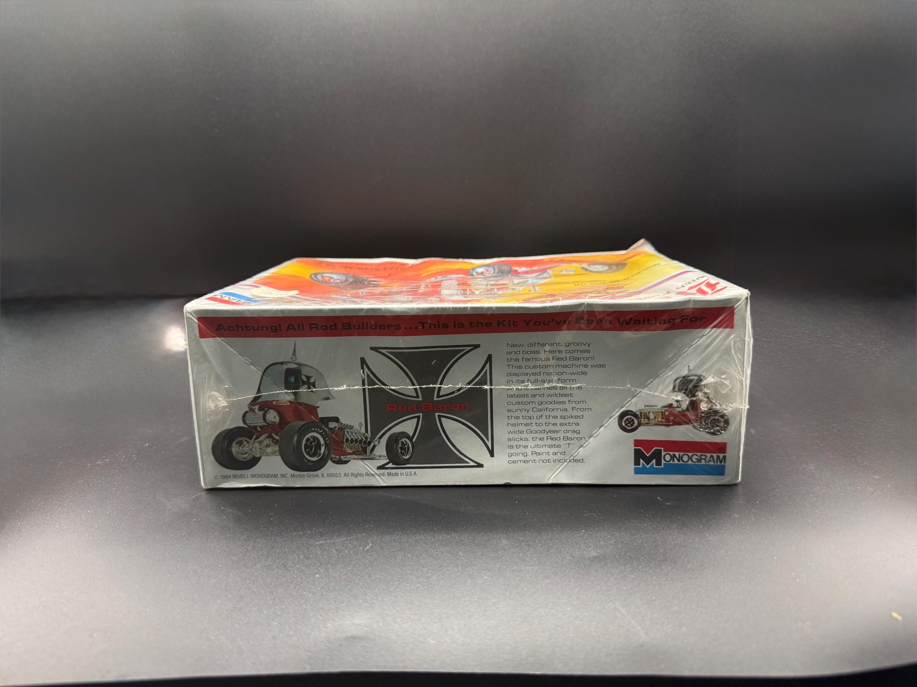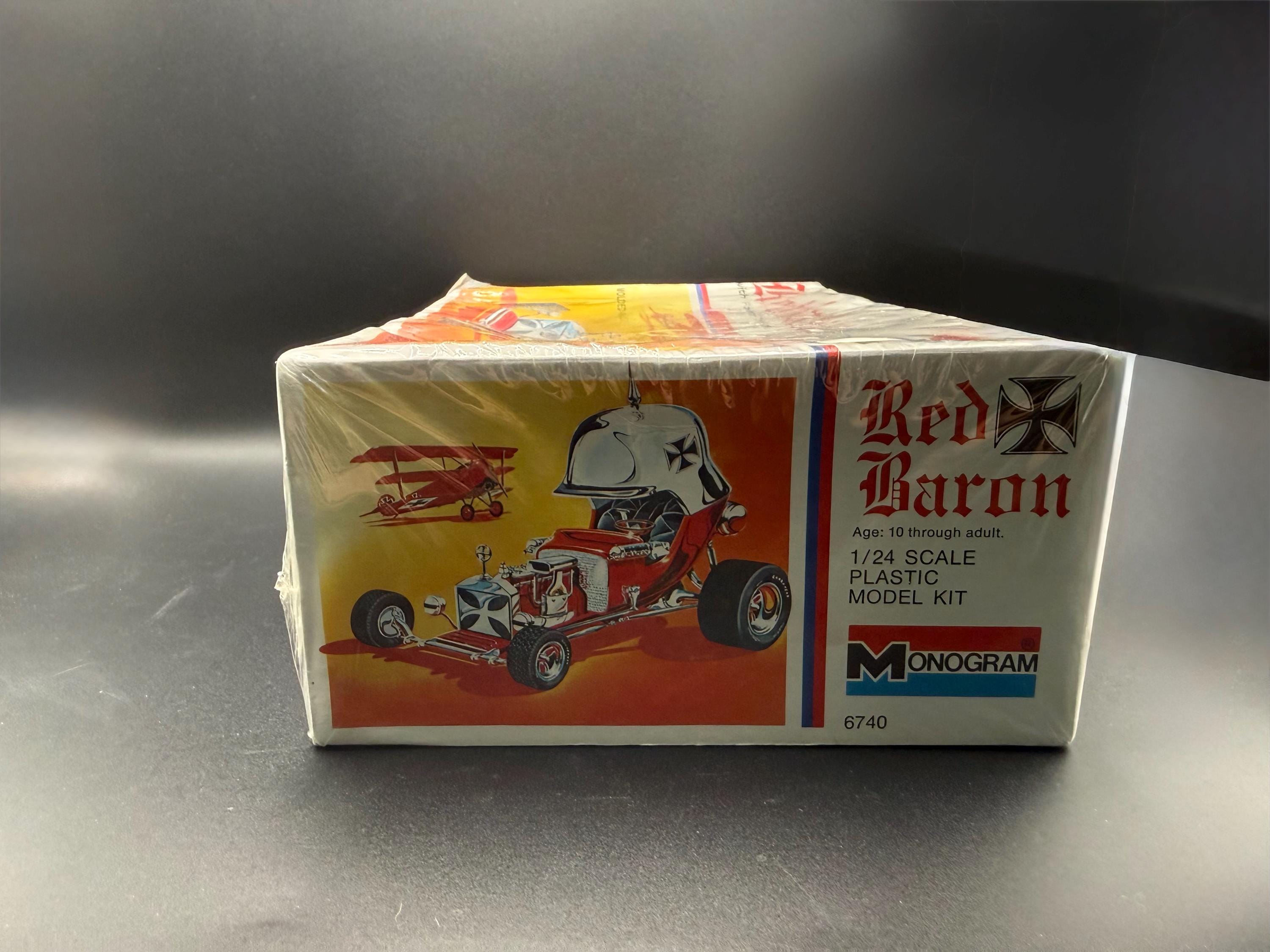 Step back into model kit history with this vintage Monogram Red Baron 1/24 Scale Plastic Model Kit. Featuring the iconic hot rod design topped with the German helmet and complete with the legendary Fokker Triplane, this kit is a true collector’s treasure.