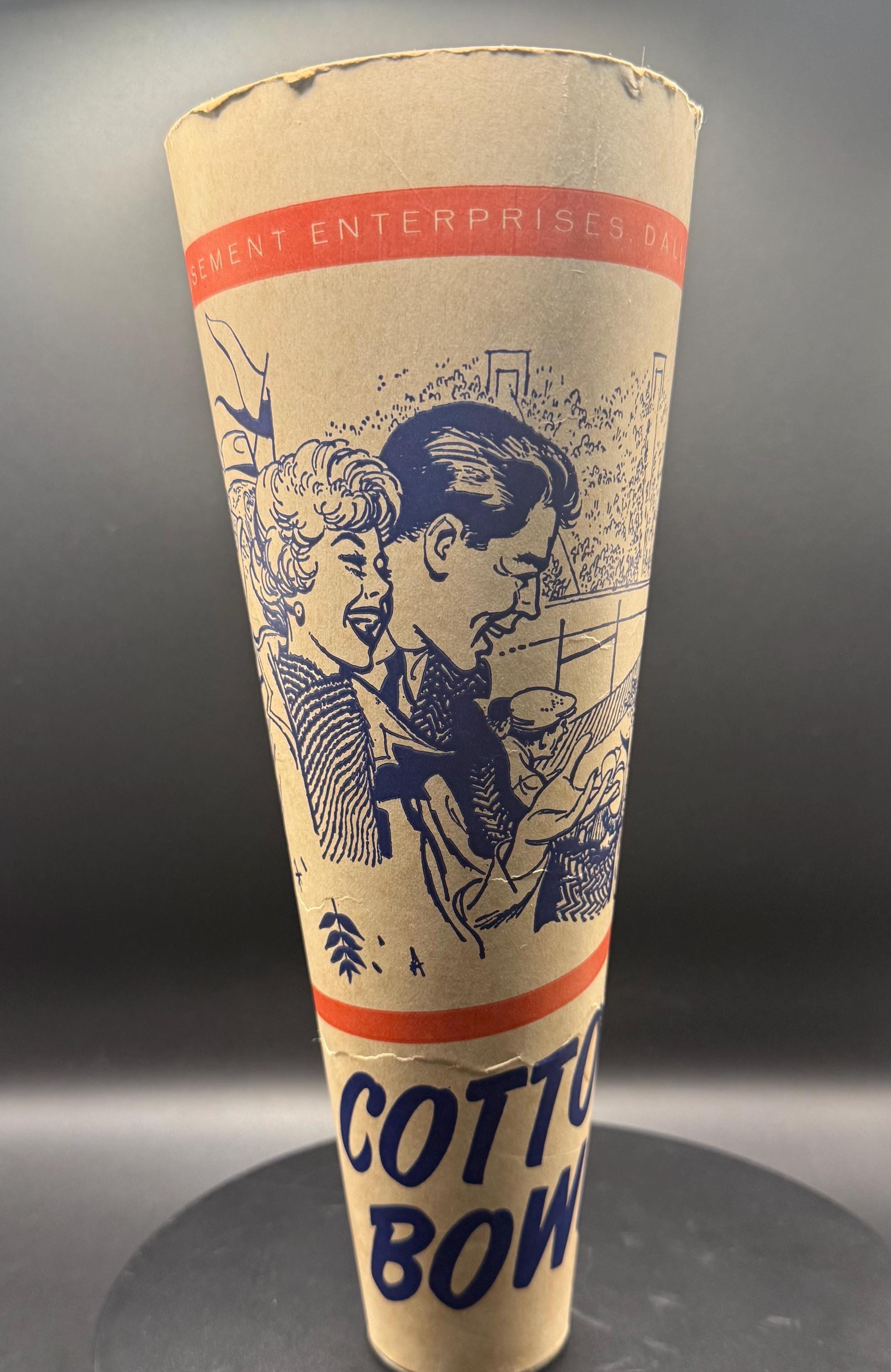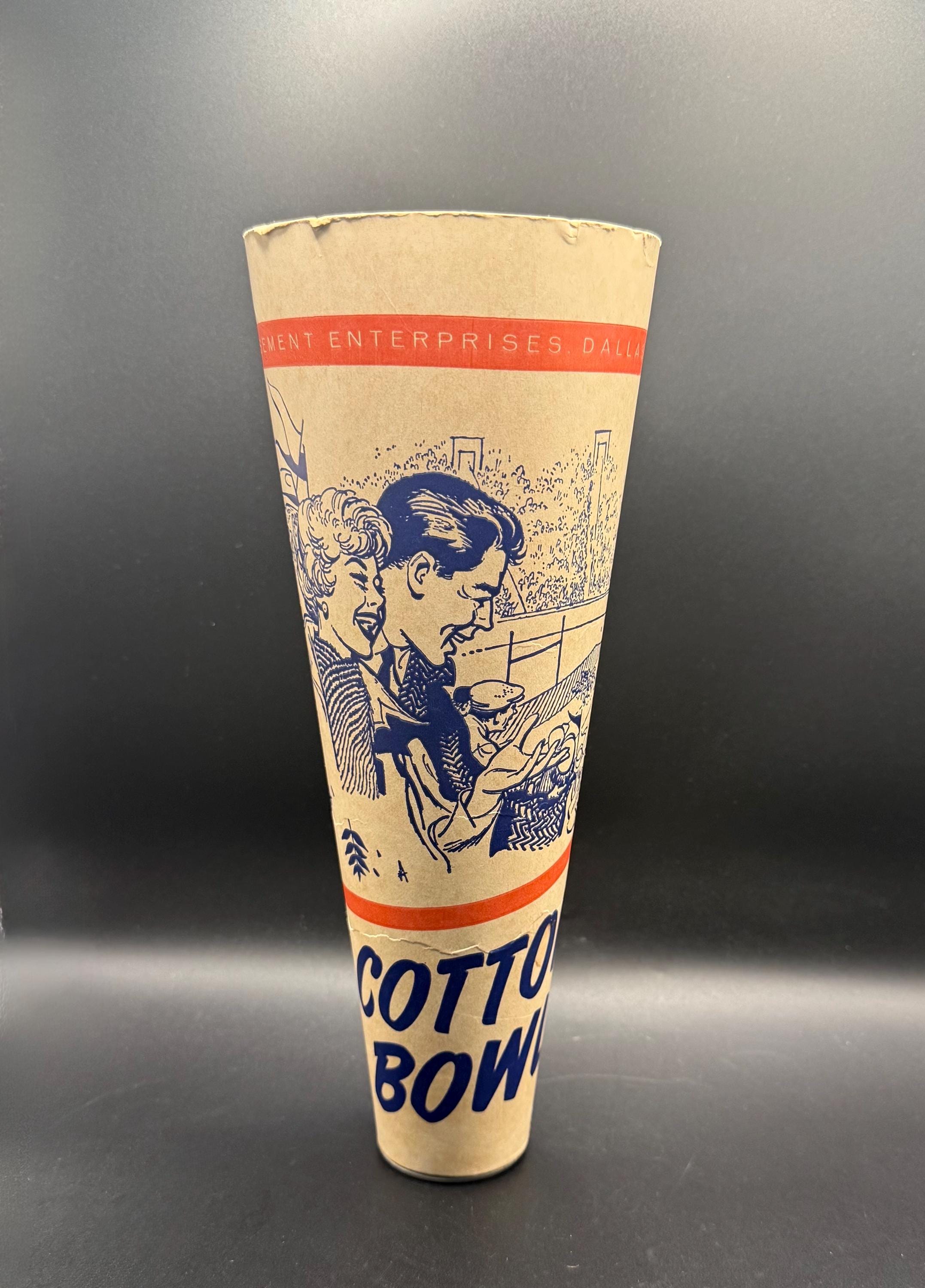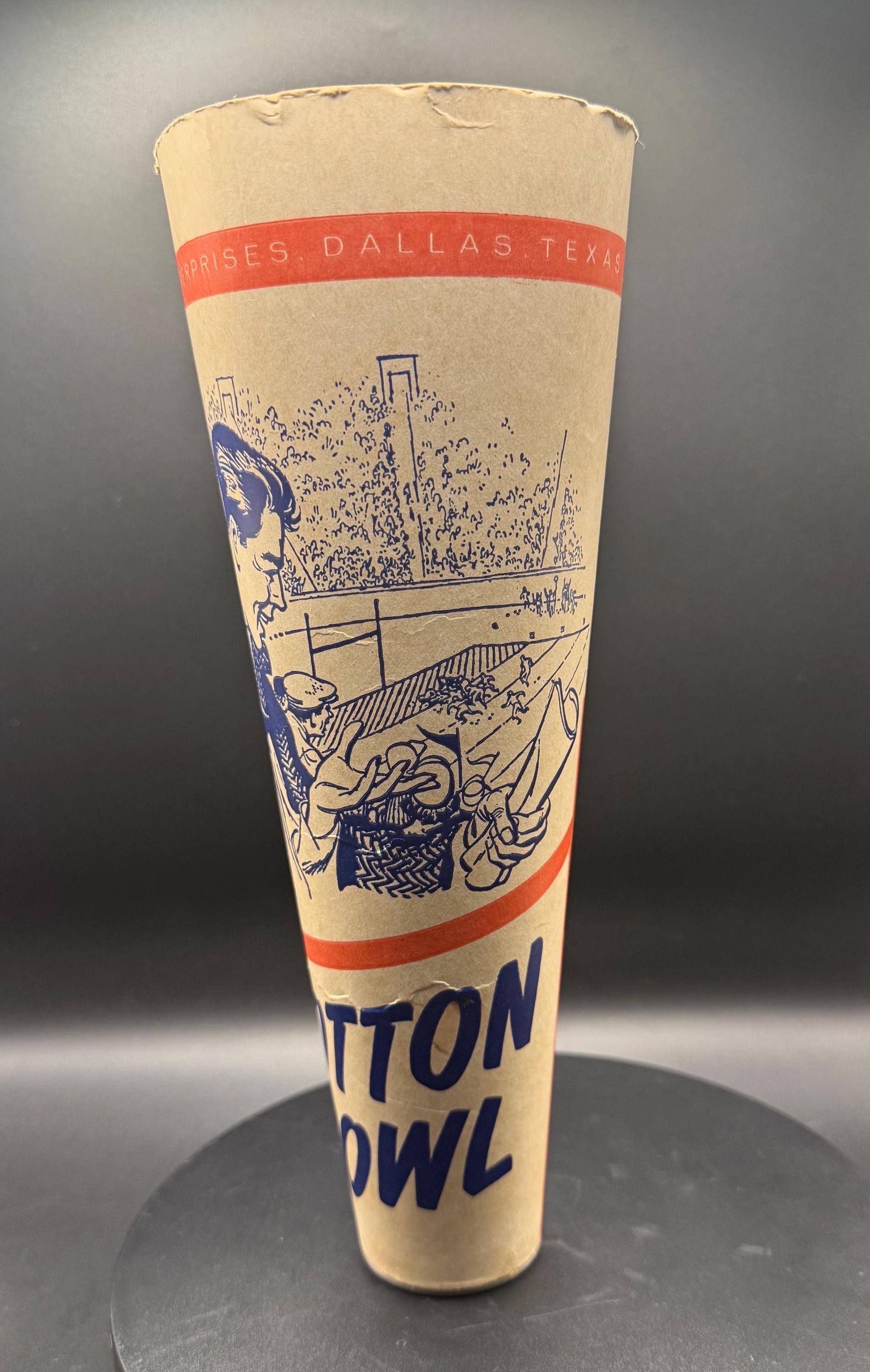 Cheer on your team with this rare piece of Cotton Bowl history! This is an original fan cheer cone from the famous Dallas, Texas stadium, likely dating to the 1950s–1960s.