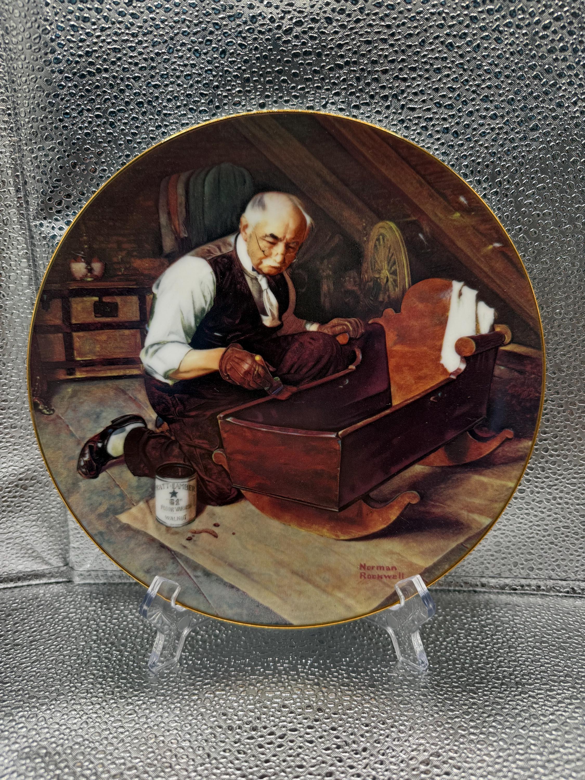 The plate shows a grandfather lovingly preparing a cradle, a heartfelt tribute to family tradition and heritage. This piece is beautifully detailed, finished with a gold rim, and features the full certificate information printed on the reverse.