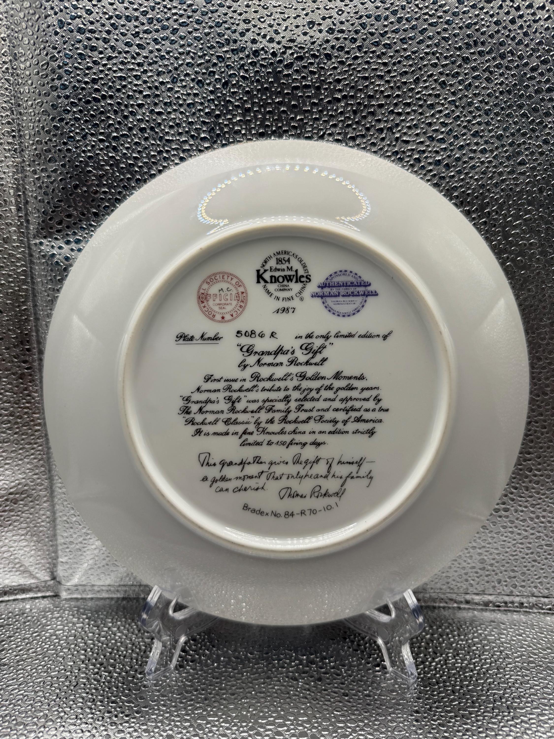 Celebrate the timeless charm of Norman Rockwell with this limited edition collector plate titled “Grandpa’s Gift.”