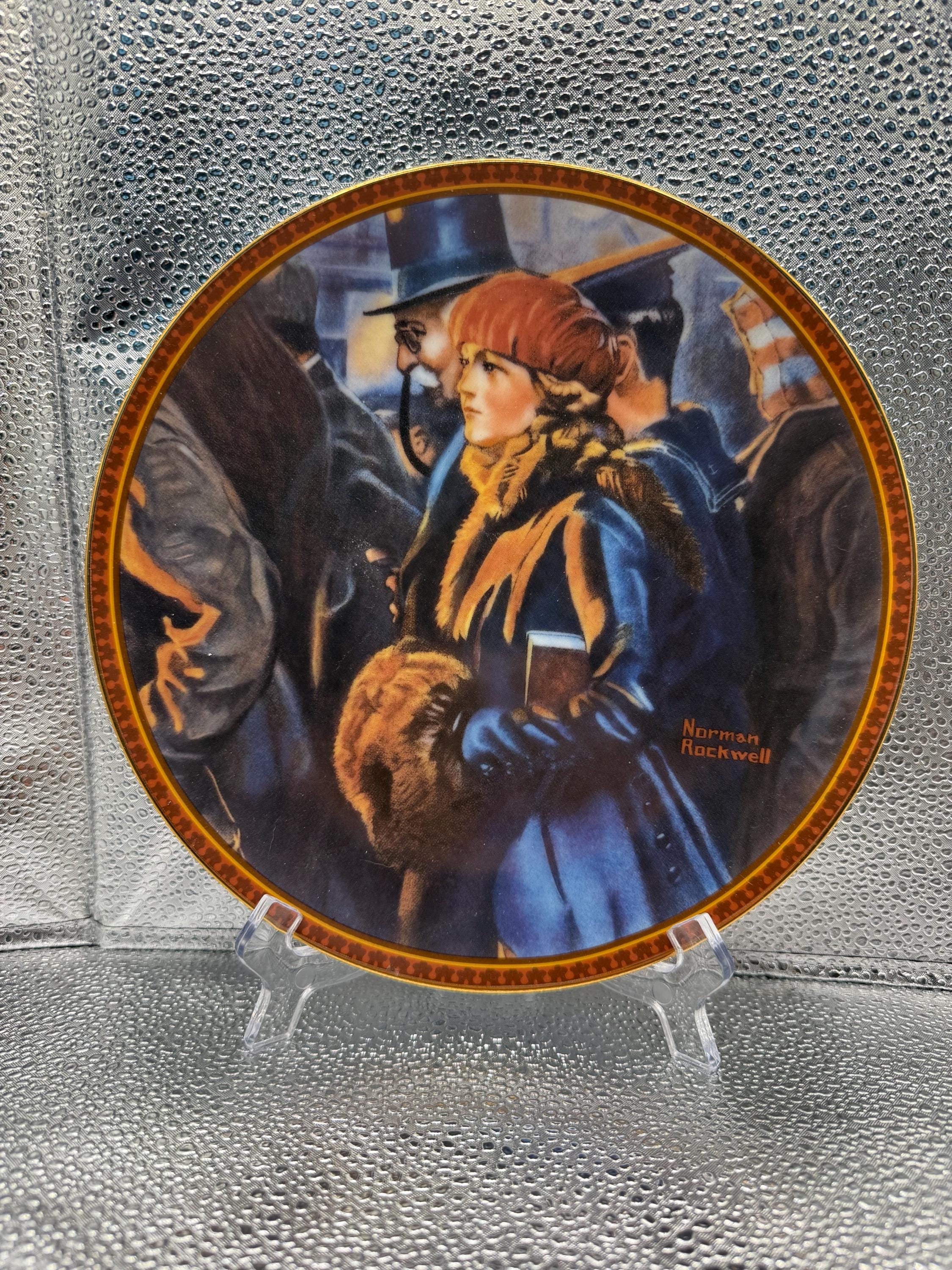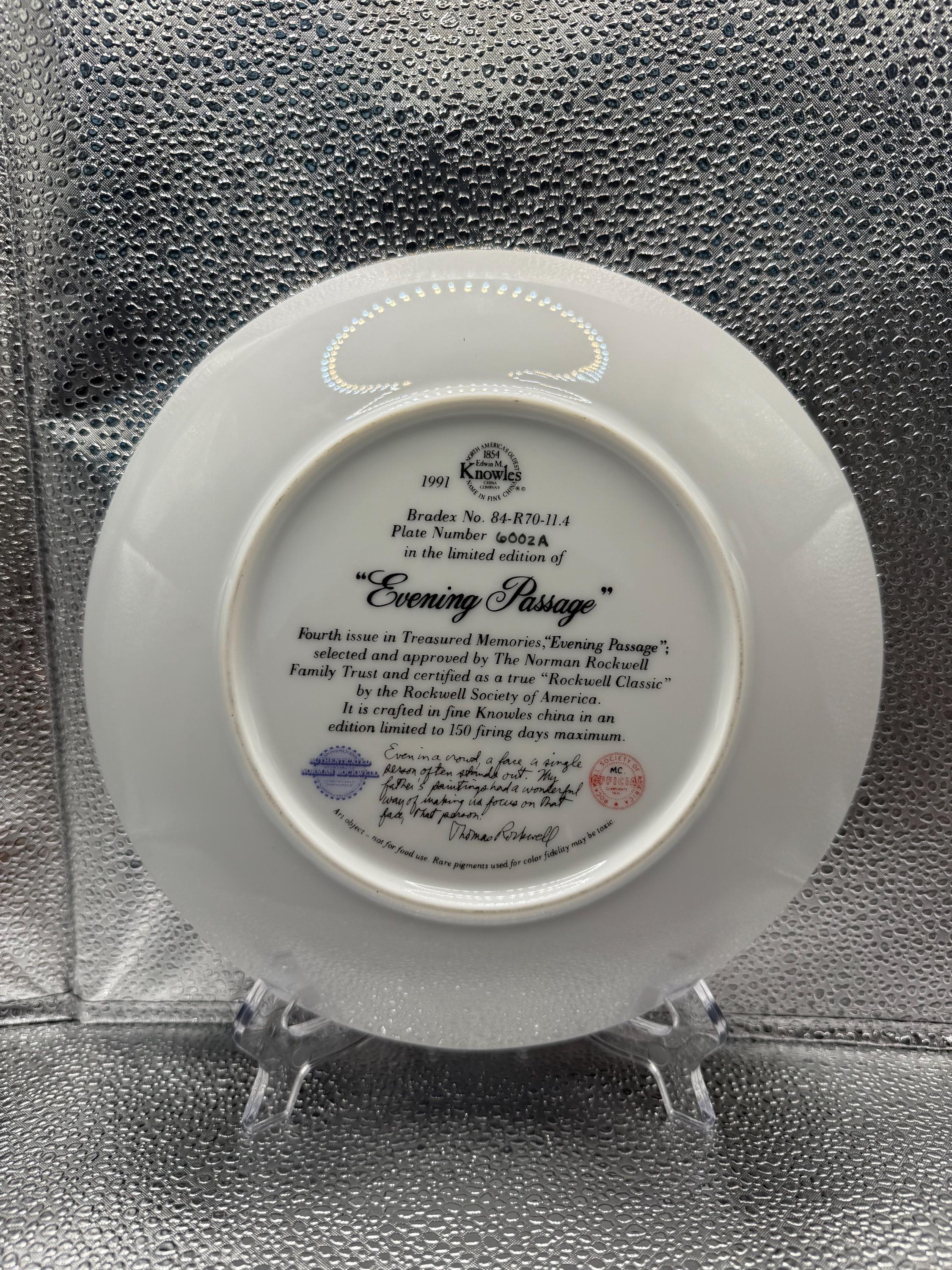 This stunning Norman Rockwell collector plate, “Evening Passage,” beautifully captures a moment of elegance and nostalgia.