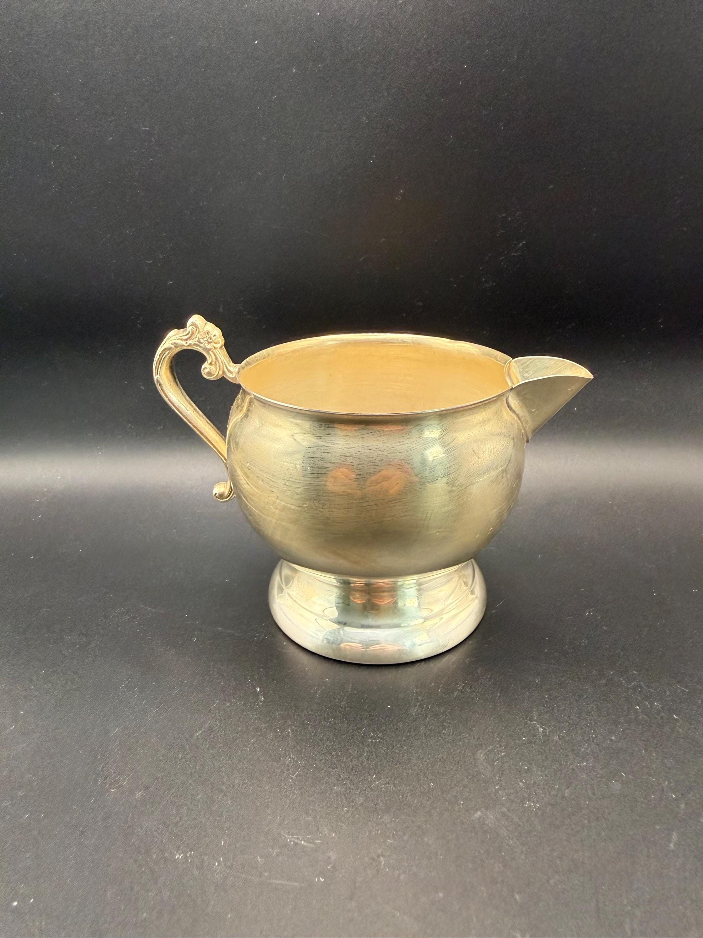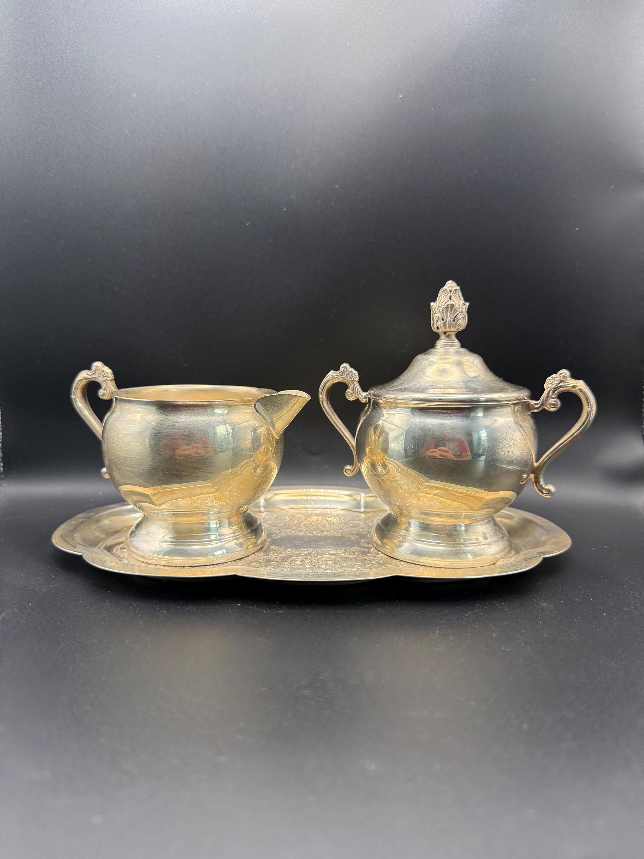 Elegant vintage Gorham silverplate cream and sugar set with matching tray. A timeless mid-century serving set, perfect for tea service or display.