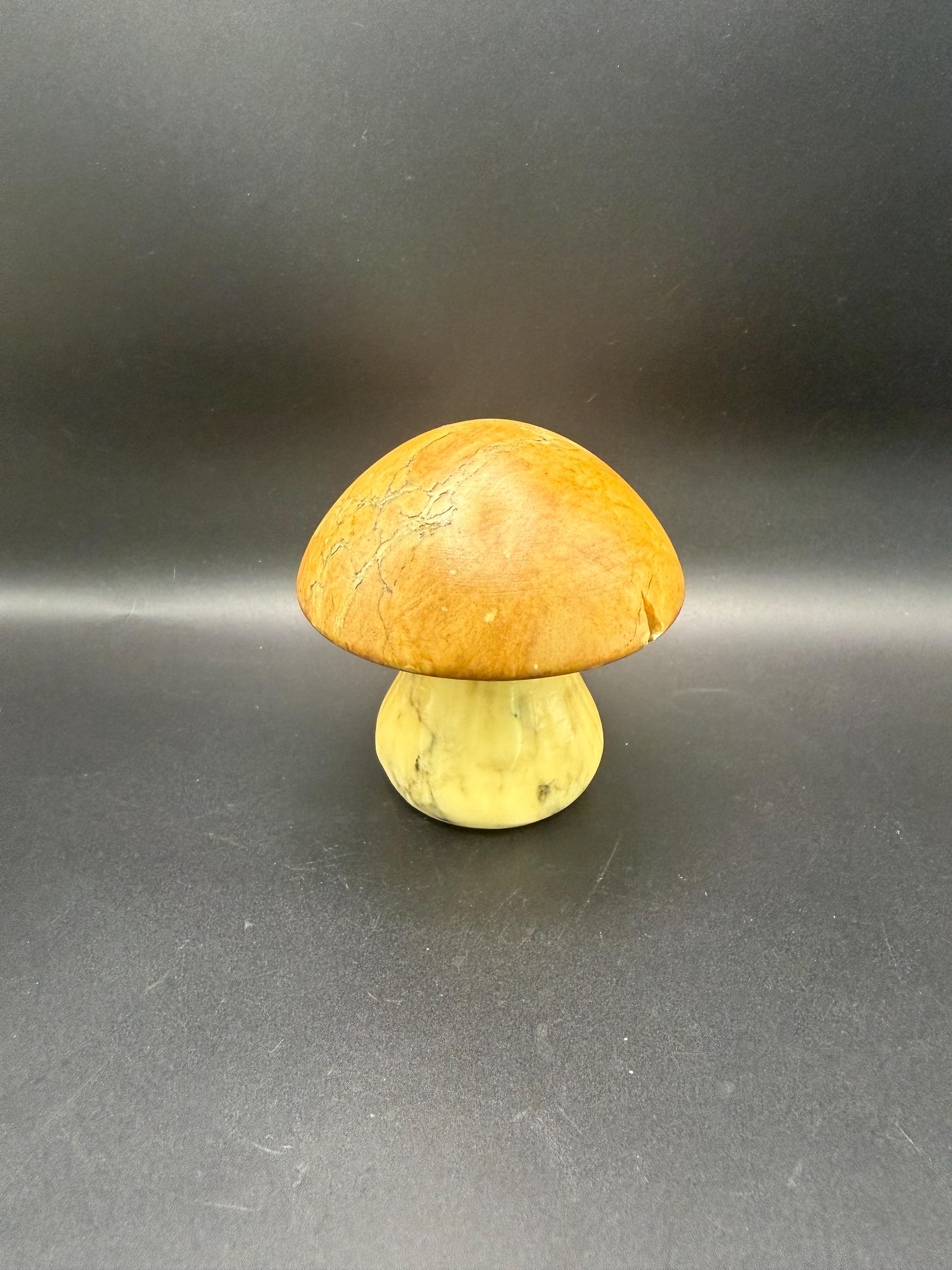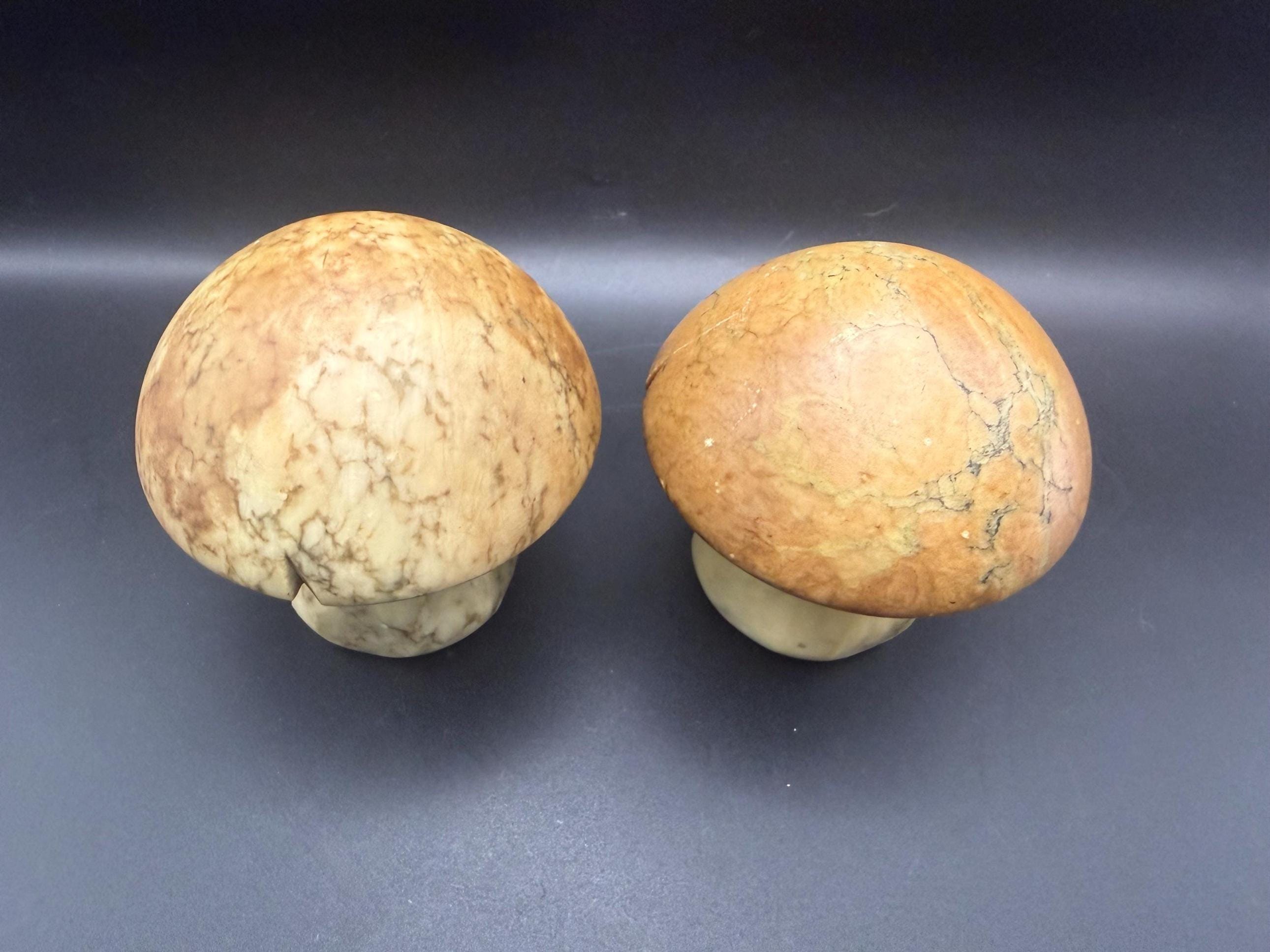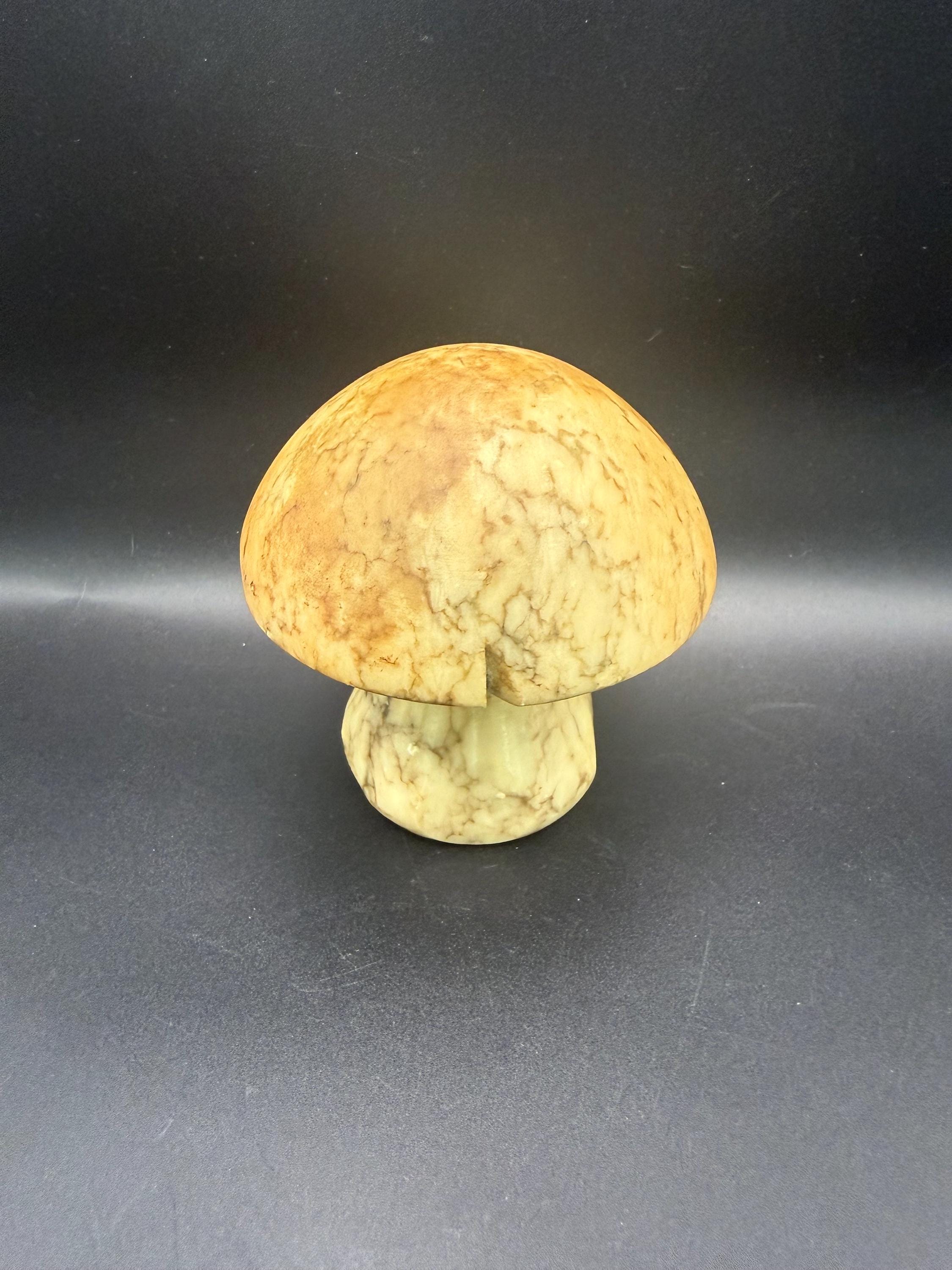 Bring a touch of European charm and earthy warmth into your home with this vintage pair of hand-carved alabaster mushrooms — made in Italy. Each piece is sculpted from natural stone with beautiful honey and cream veining, giving them a timeless organic look.