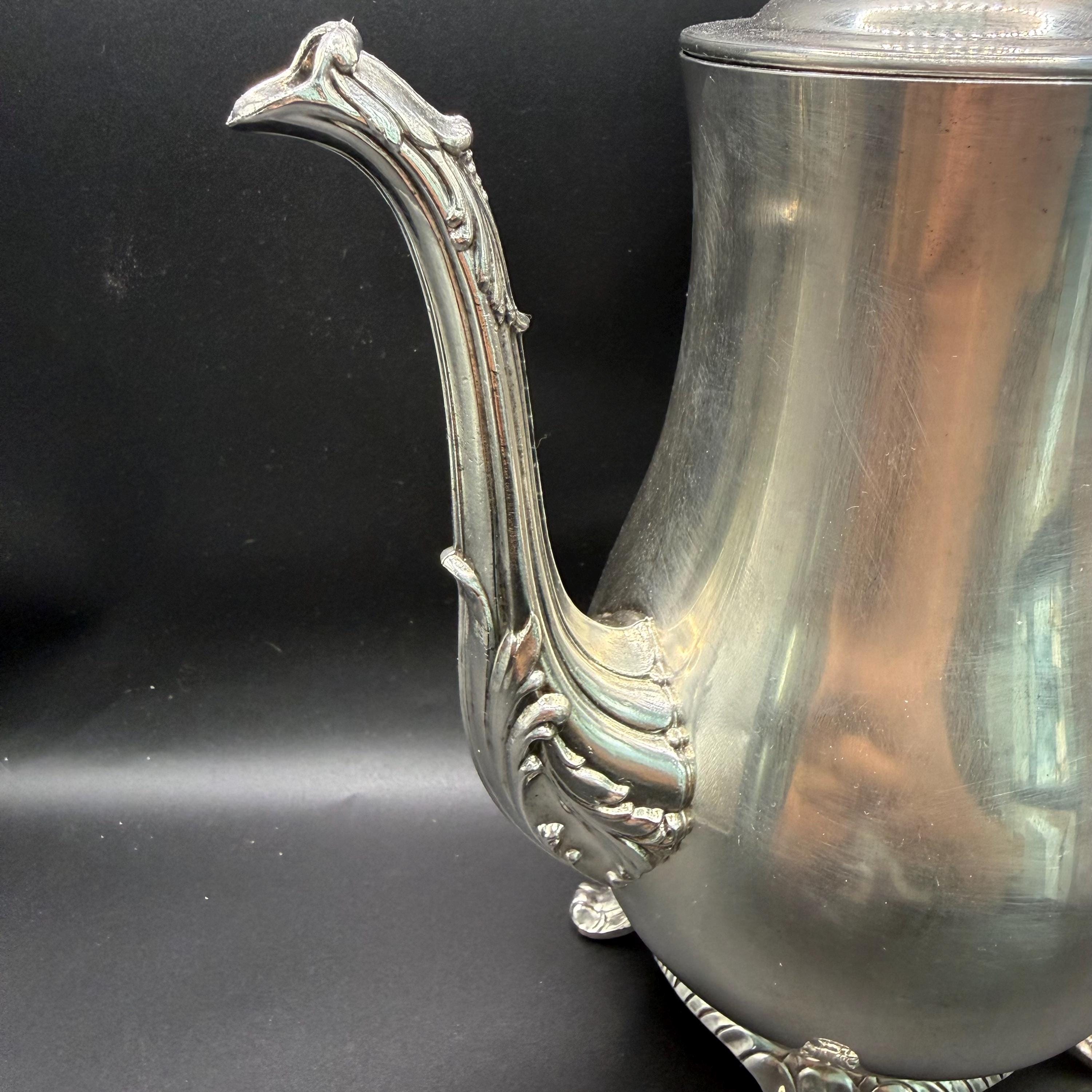 Bring timeless elegance to your home with this vintage silverplate coffee and tea set by International Silver Co. (I.S. Co.). This four-piece collection features richly detailed Baroque-style scrollwork, footed bases, and soft, graceful silhouettes that make it perfect for display, entertaining, or gifting.