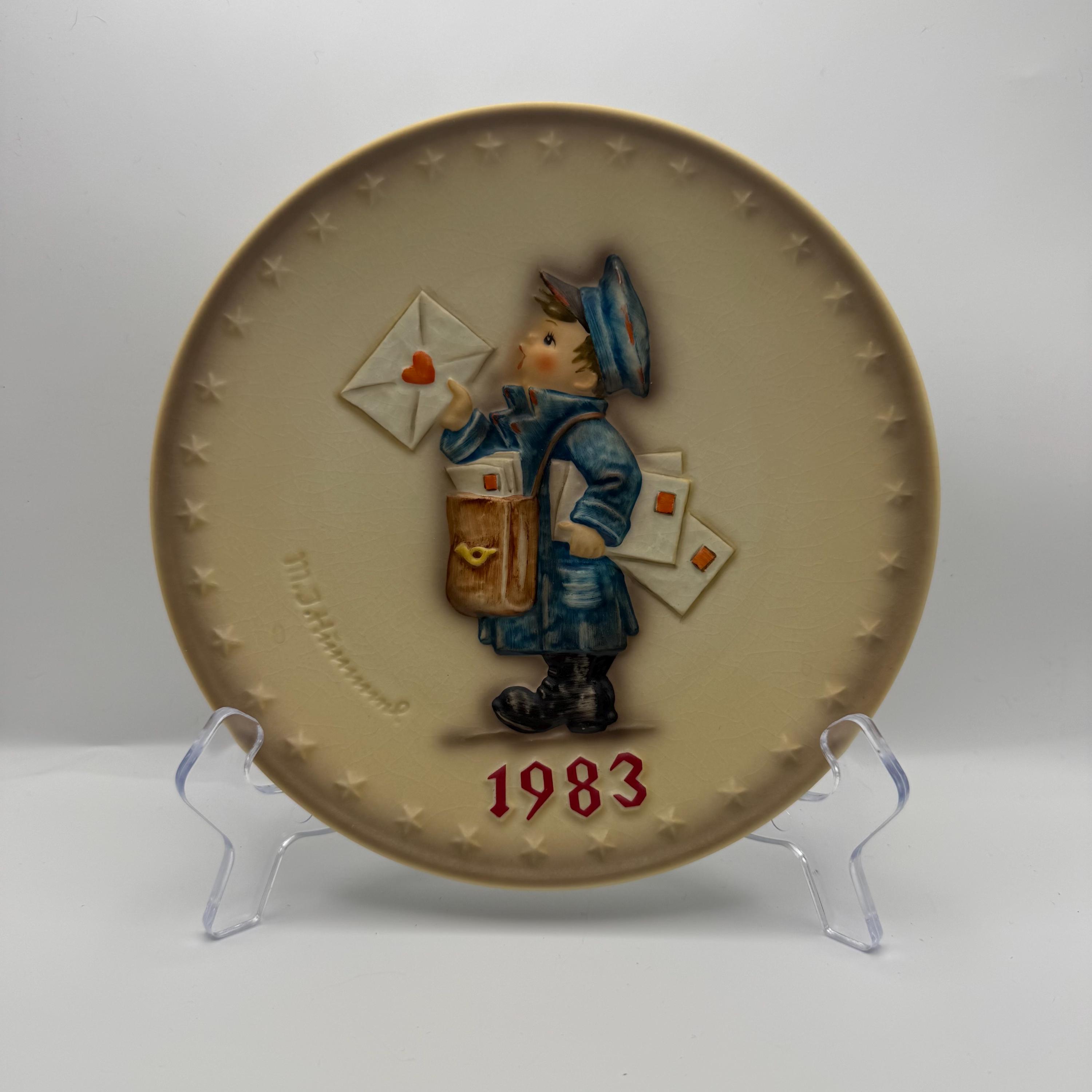The Vintage Goebel Hummel 1983 Annual Plate is a round porcelain collector plate from West Germany, featuring a multicolor design. This decorative plate, measuring 7.5 inches in diameter, was designated as the "Plate of the Year" in 1983. With its German culture influences and late 20th-century style, this collectible item from the Hummel brand is a cherished piece for collectors of vintage Hummel items.