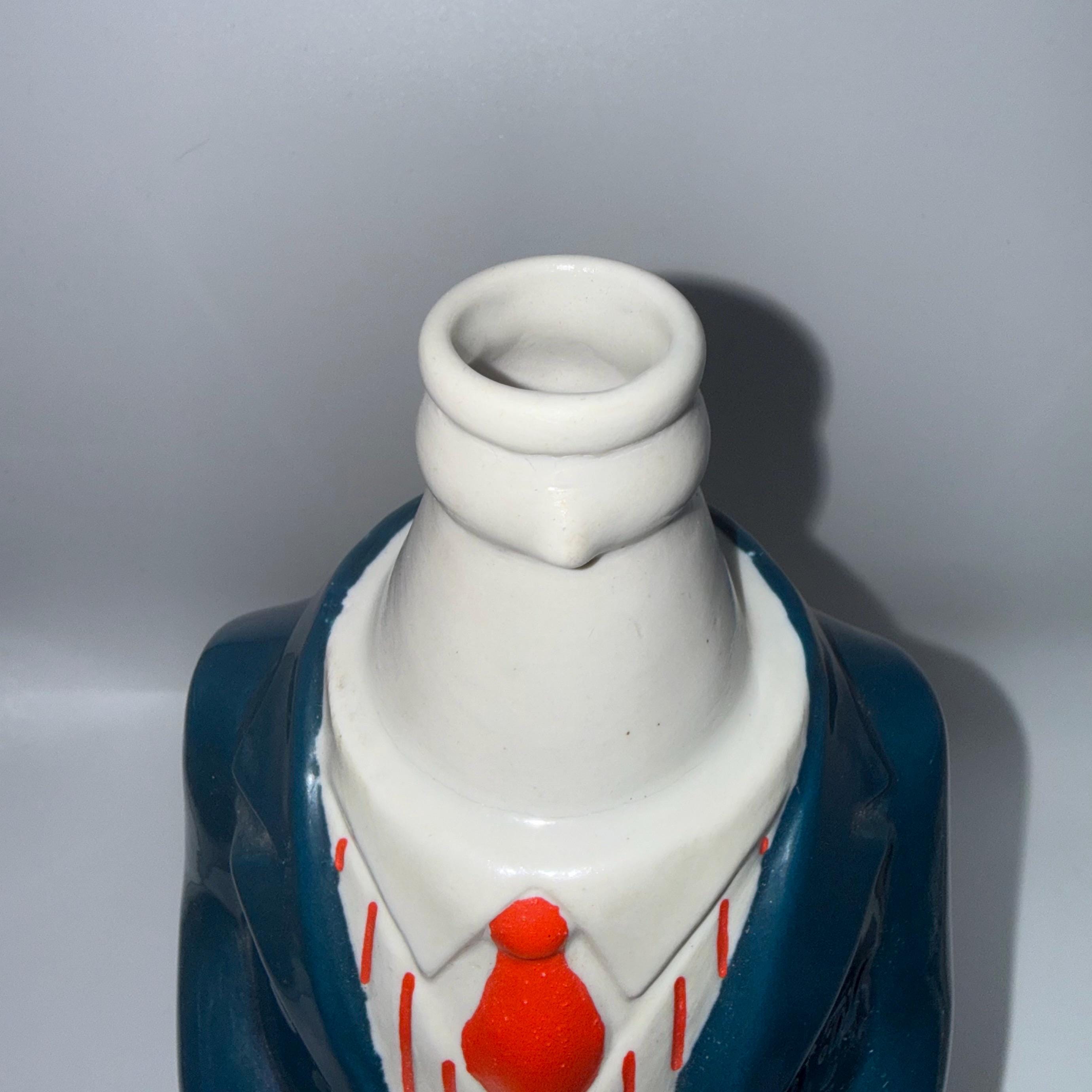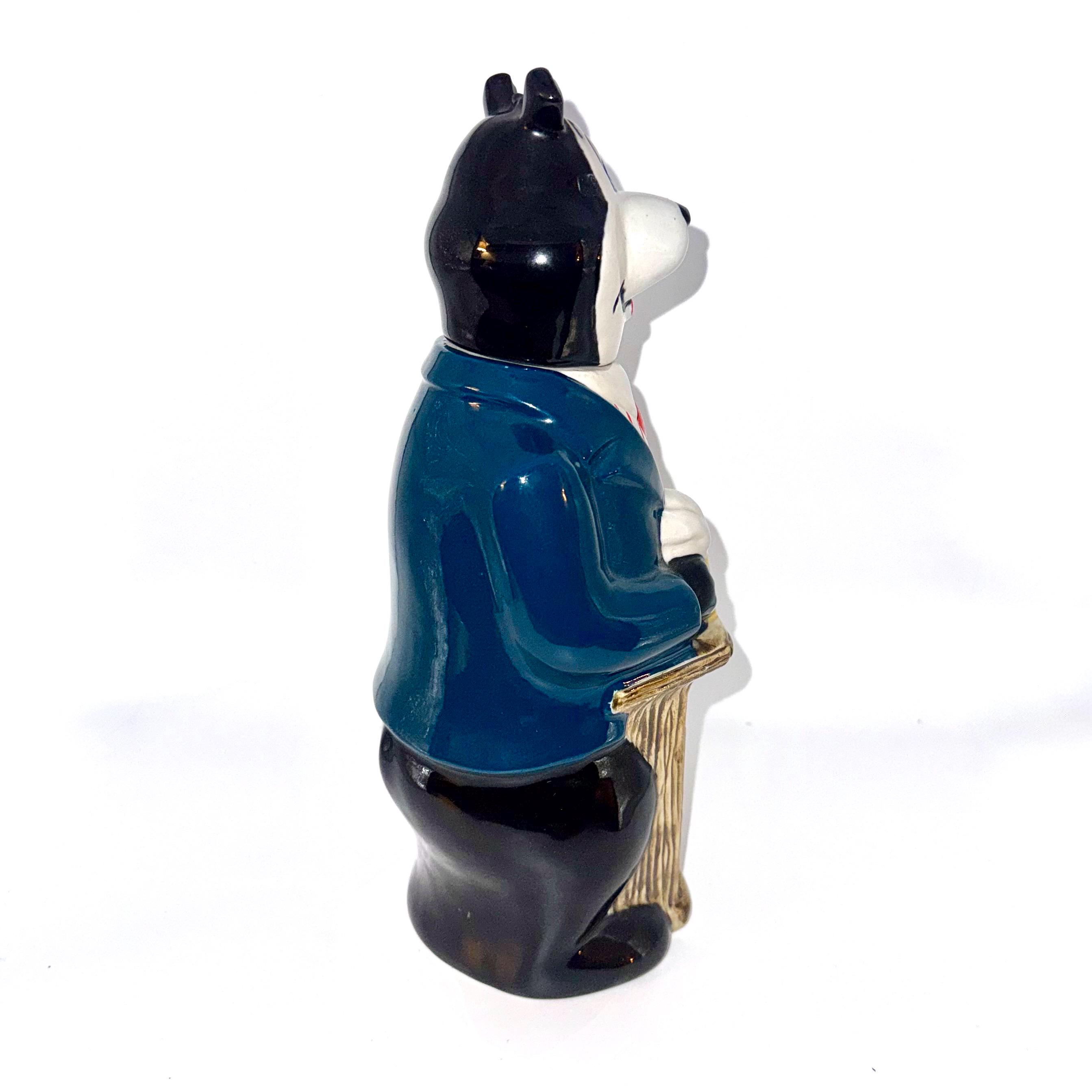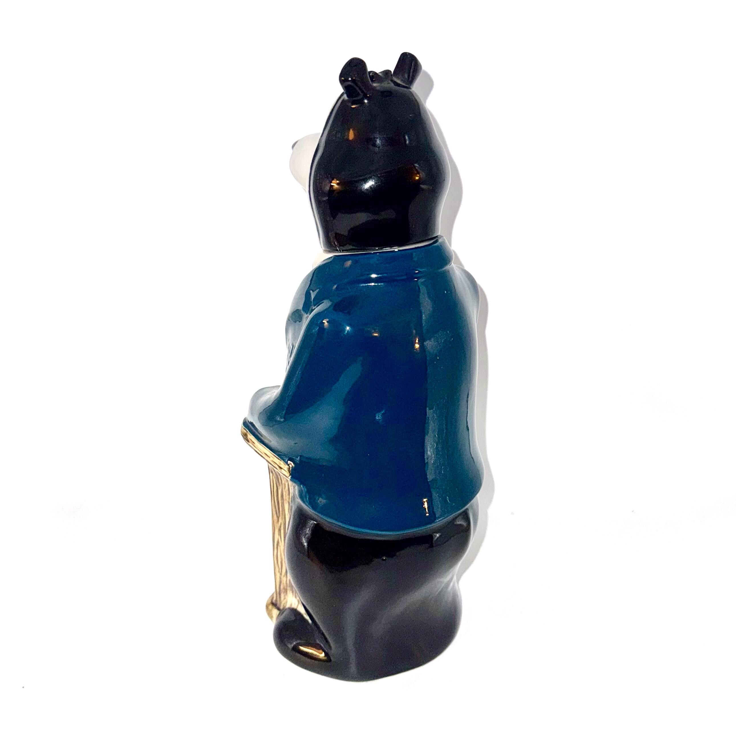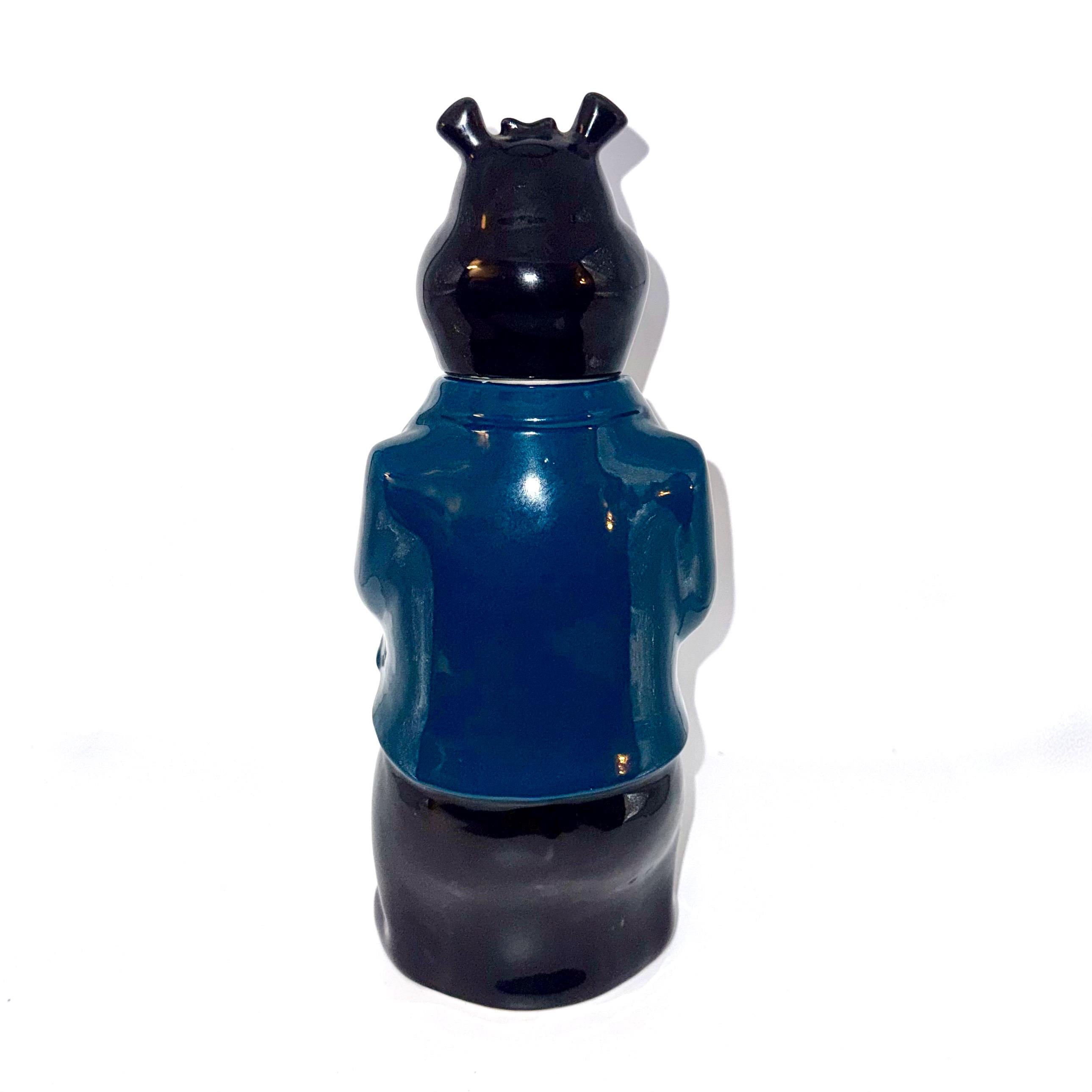 Vintage 1973 Hamm’s Bear decanter produced by Ceramarte in Brazil. This ceramic advertising decanter features the Hamm’s Bear in a suit holding a beer mug, standing behind a barrel marked “Hamm’s 1973.” Includes the original removable bear head stopper. Bottom is marked “Ceramarte • Made in Brazil • Hamm’s BWG 1973” with number 950.