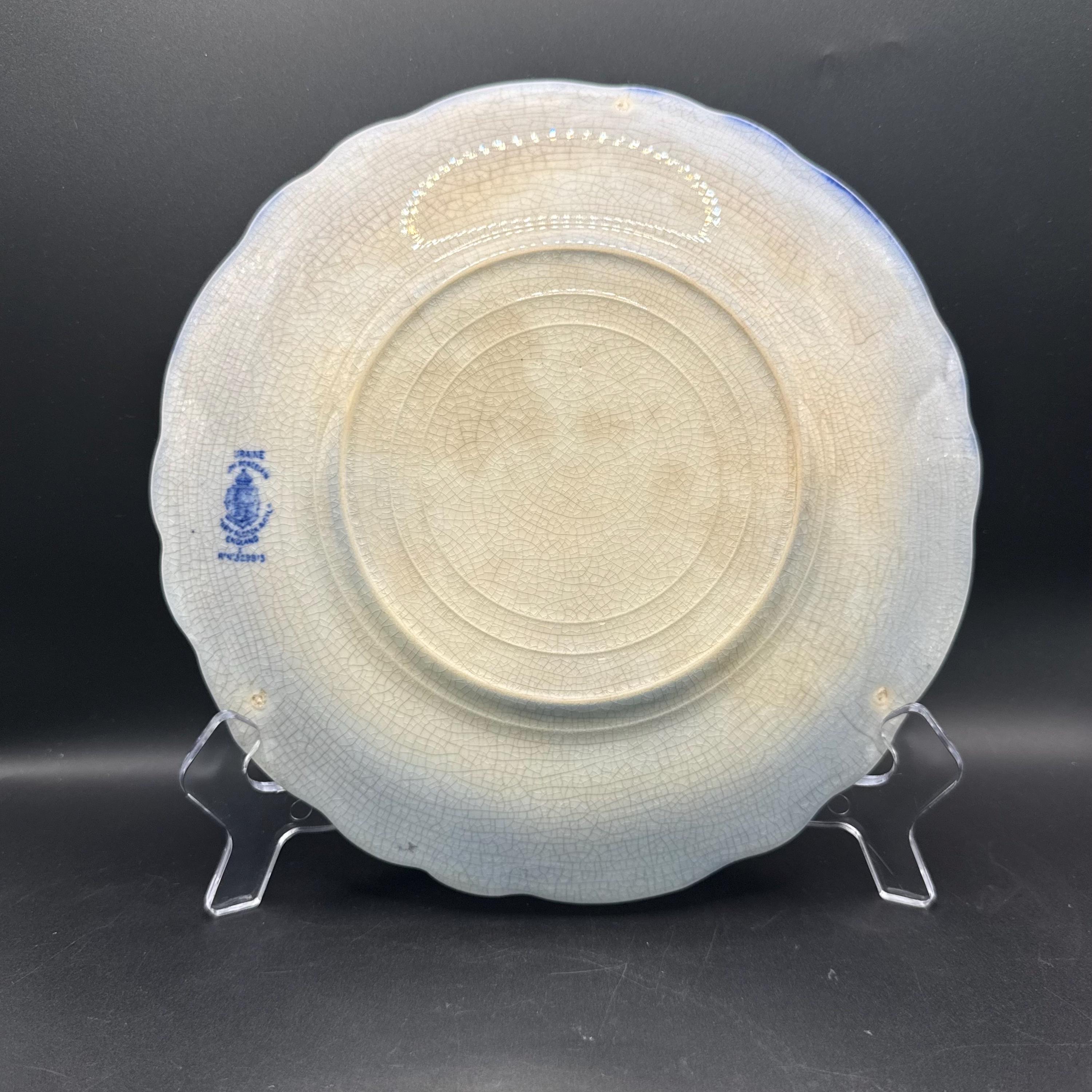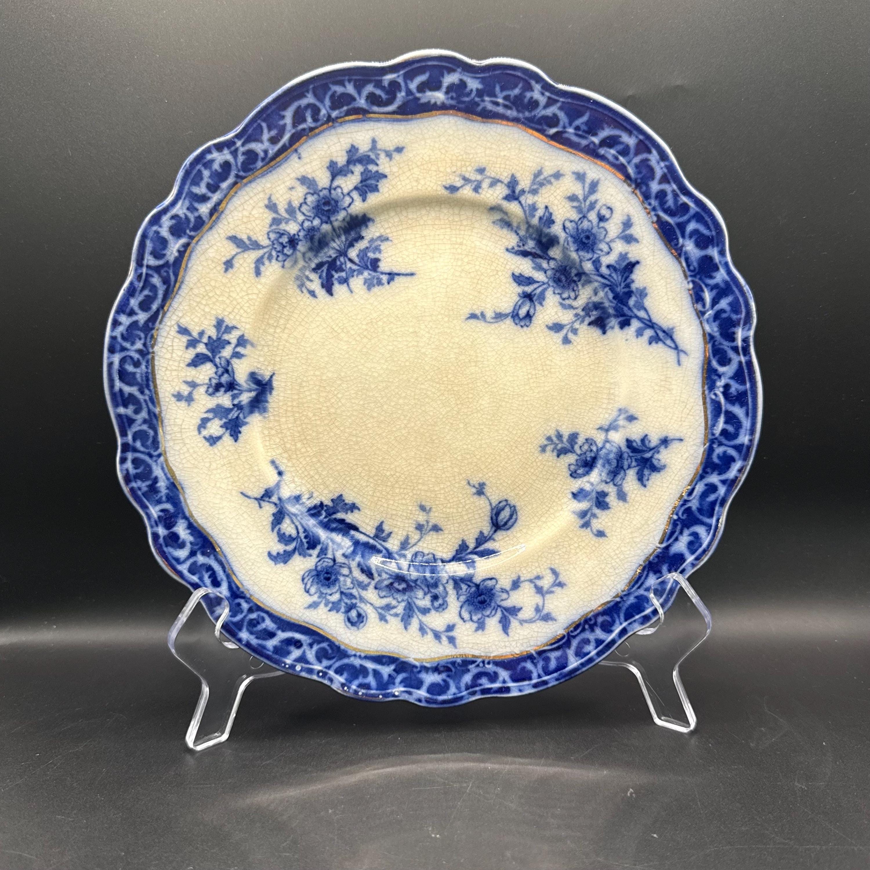Beautiful antique blue transferware plate in the Touraine pattern by Stanley Pottery Co., England.