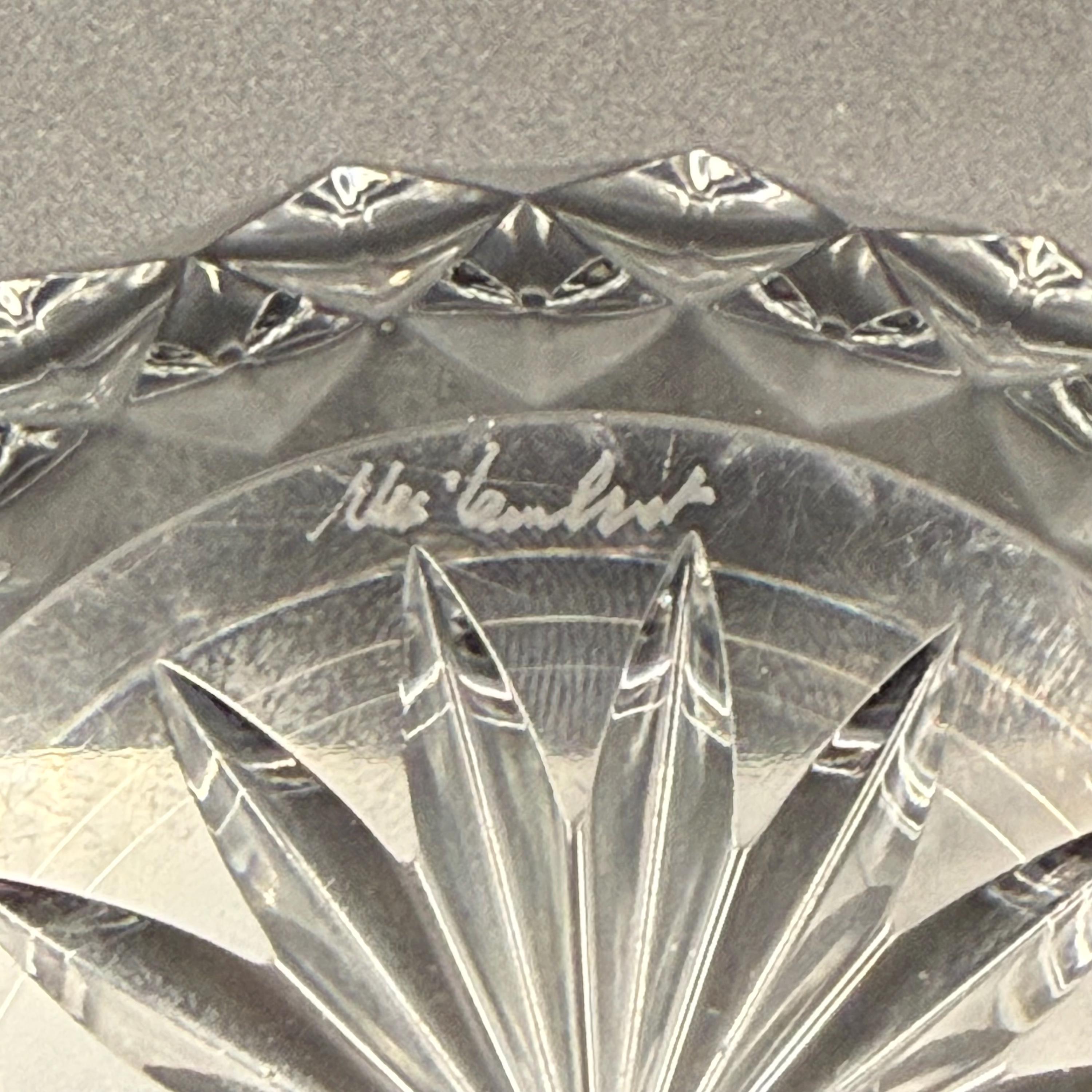 The etched cursive signature is visible on the base and matches authentic mid-20th-century Val Saint Lambert marks. This piece works beautifully as a trinket bowl, nut dish, candy bowl, or small centerpiece and displays wonderfully in both traditional and modern settings.