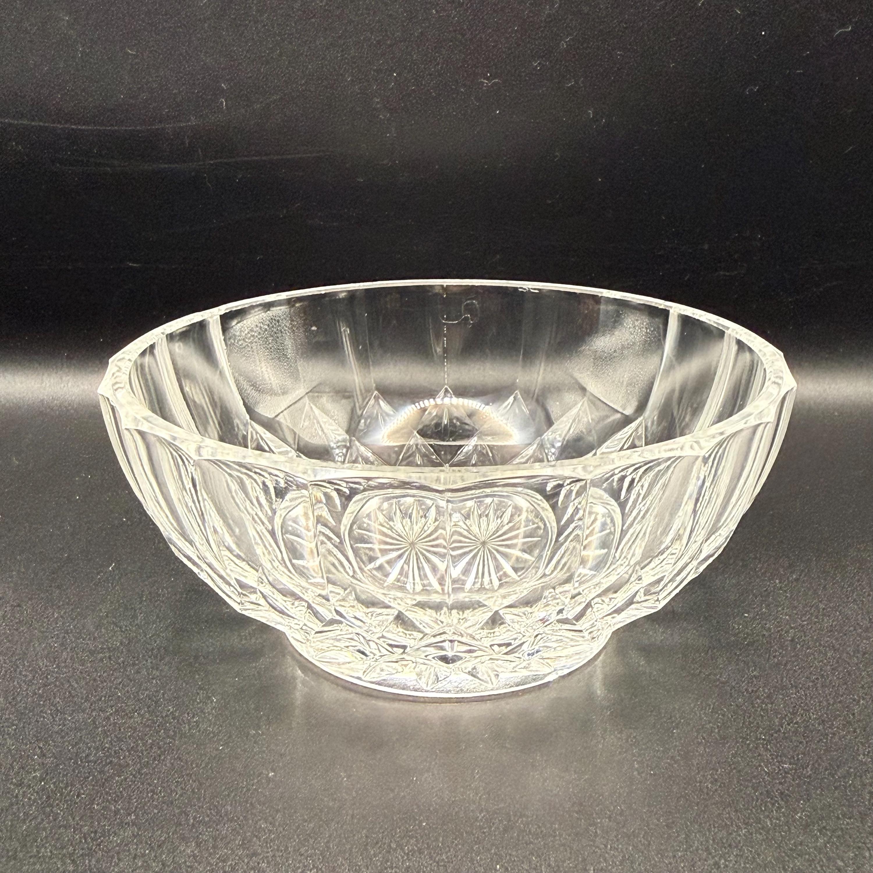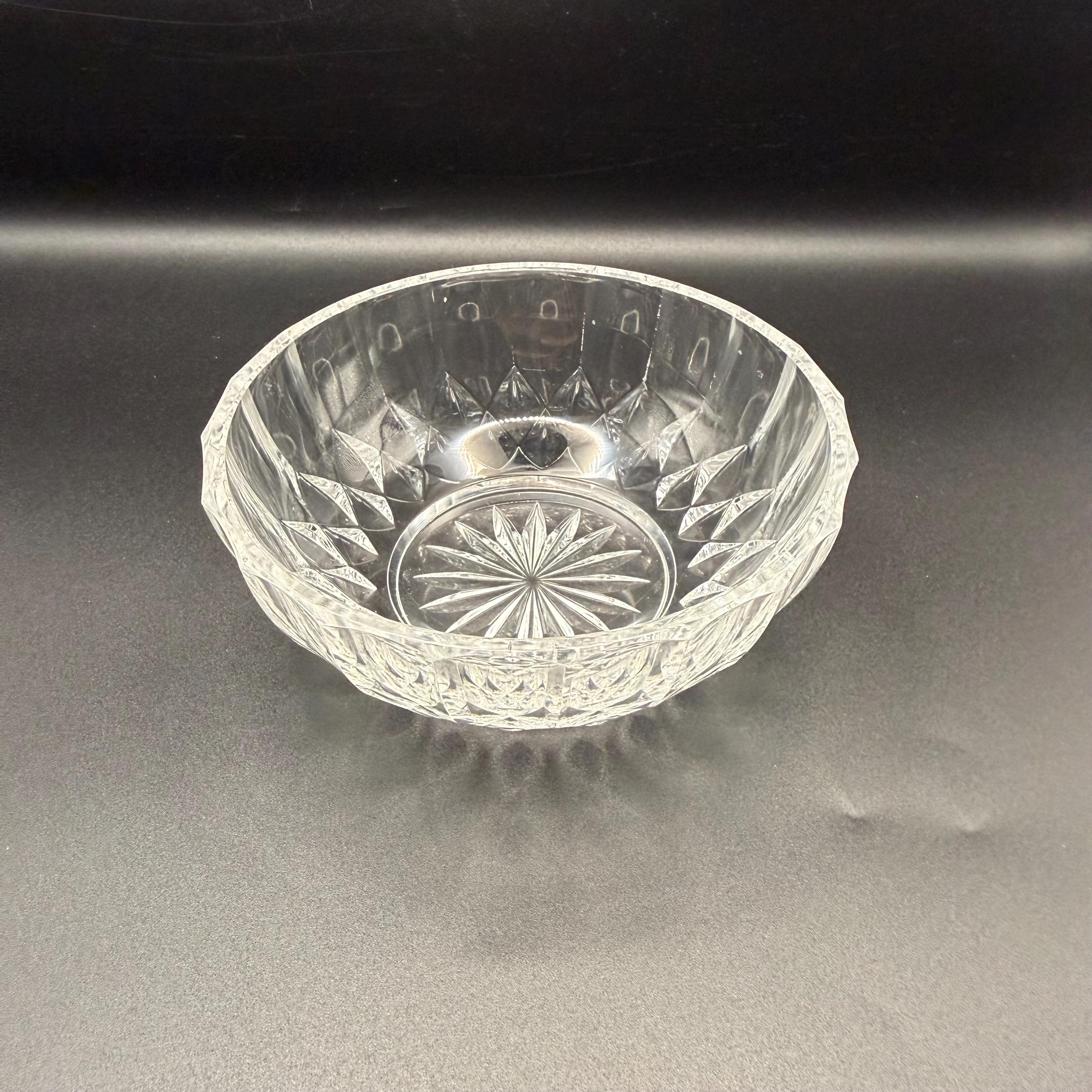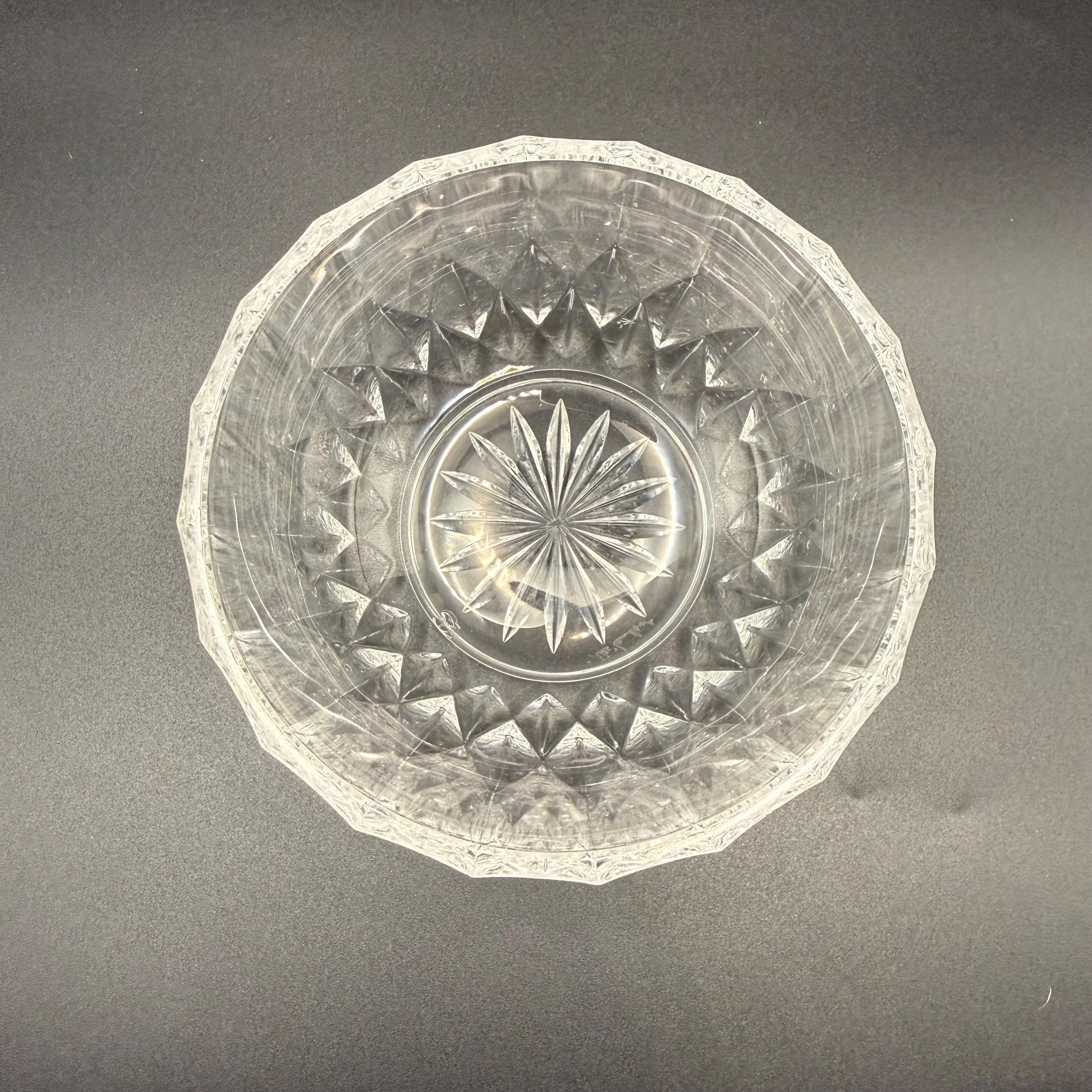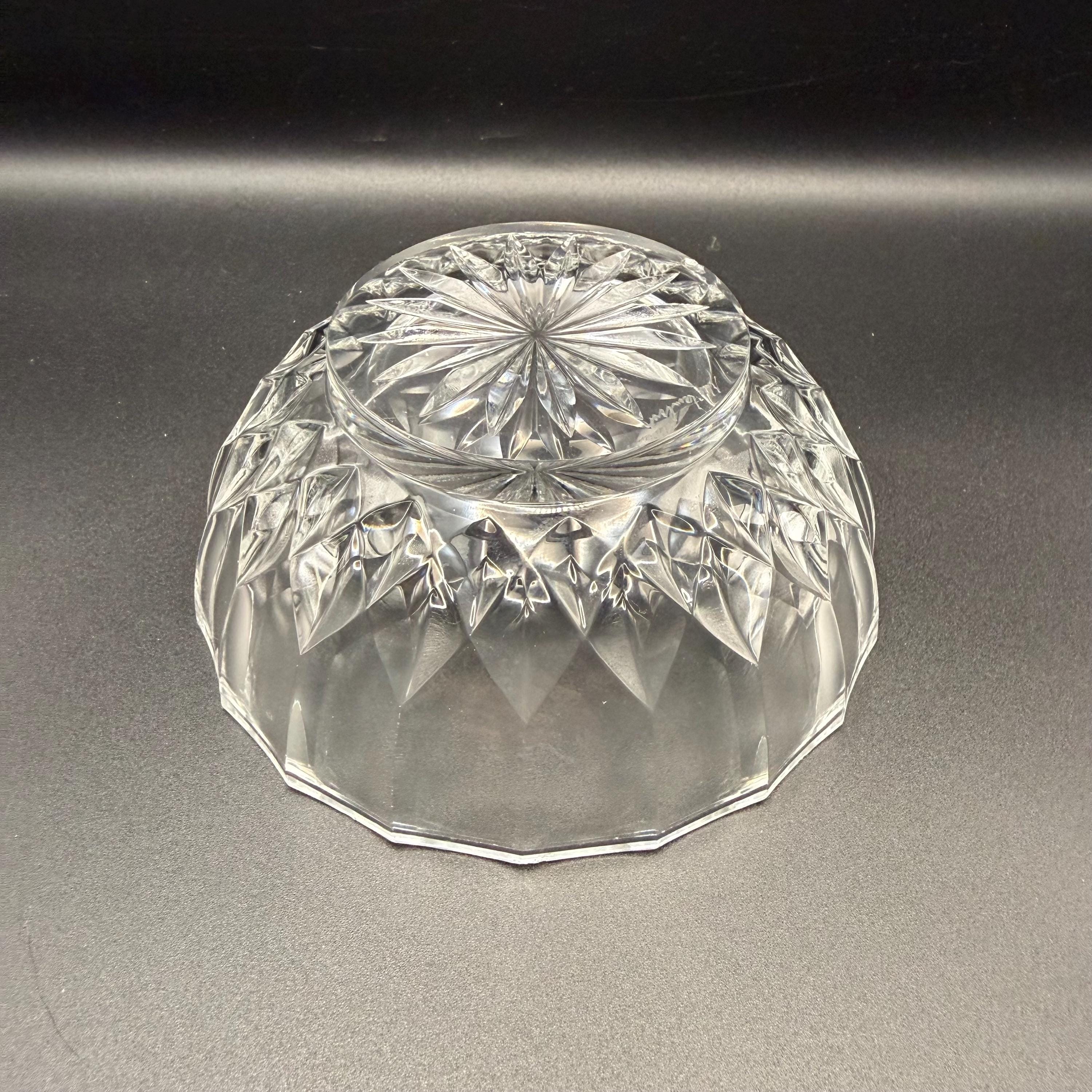 This vintage cut crystal bowl is signed Val Saint Lambert, one of Belgium’s most respected crystal manufacturers. The bowl features crisp, deeply cut fan and diamond patterns with a classic starburst base, showcasing the exceptional clarity and craftsmanship Val Saint Lambert is known for.