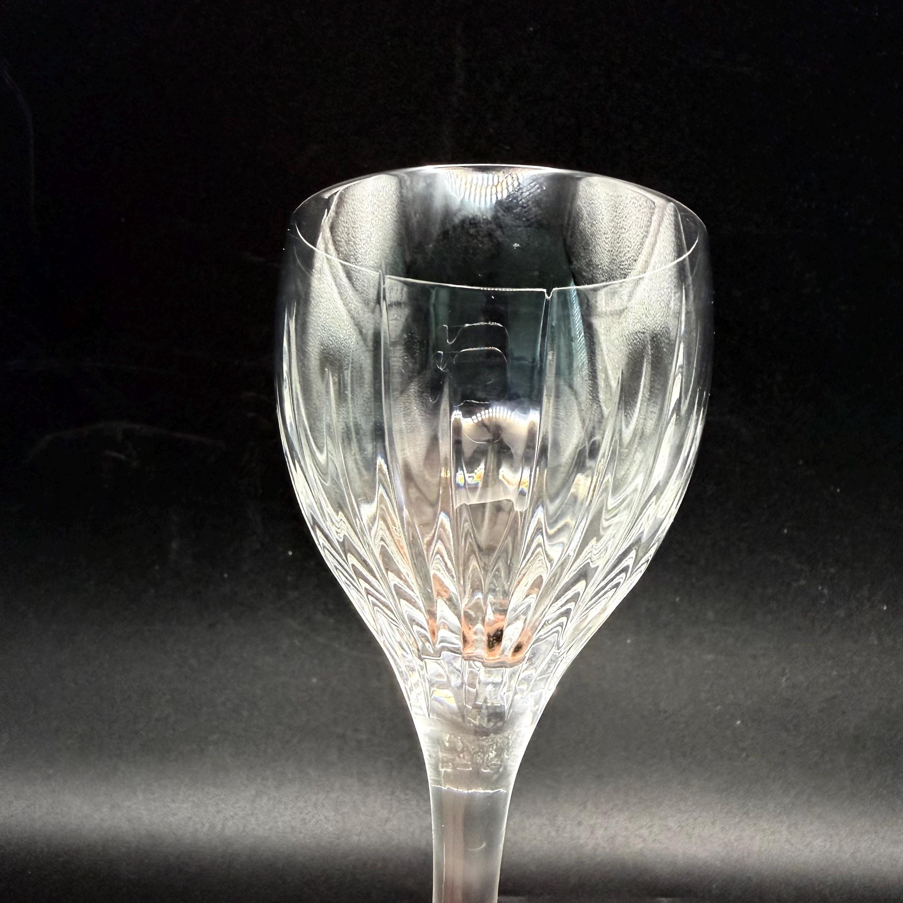 Excellent vintage condition. The glass is bright and clear with no chips, cracks, or clouding. The signature on the base is crisp and legible. As with all vintage blown crystal, slight variations in the glass thickness or cut are a hallmark of hand-craftsmanship—please ensure the measurements below match your existing set.